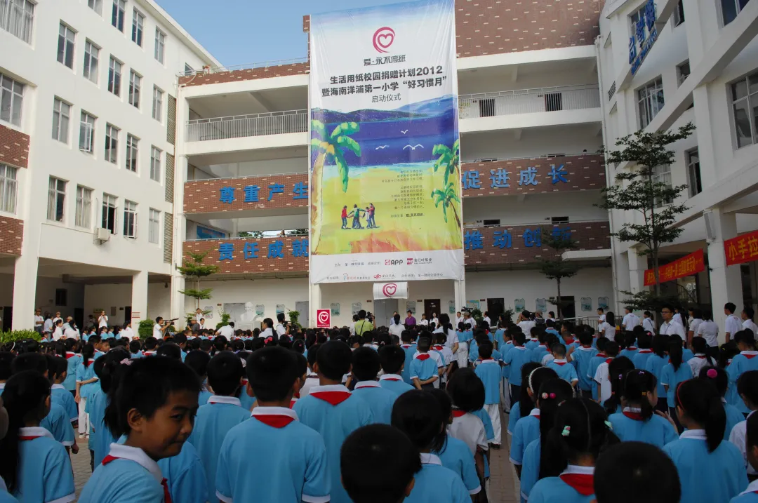 2012年“爱永不停纸”生活用纸校园捐赠计划在海南洋浦一小启动