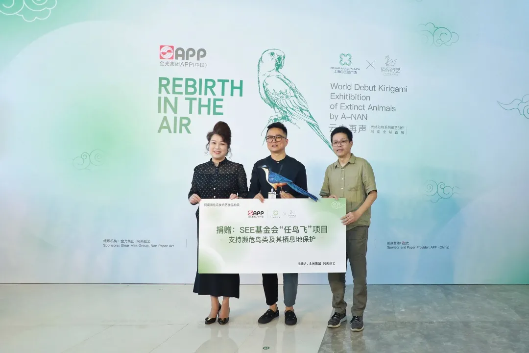 本次展览中,还专门设立了“‘纸’为公益”区域,阿南老师以循环再生的环保方式复原已然灭绝的一只绝美鸟类,并将其作为捐赠义卖品。益达娱乐出资买下该件独一无二的艺术品后,义卖所得将全部捐赠给SEE基金会“任鸟飞”项目。该项目是守护中国最濒危水鸟及其栖息地的综合性生态保护项目。